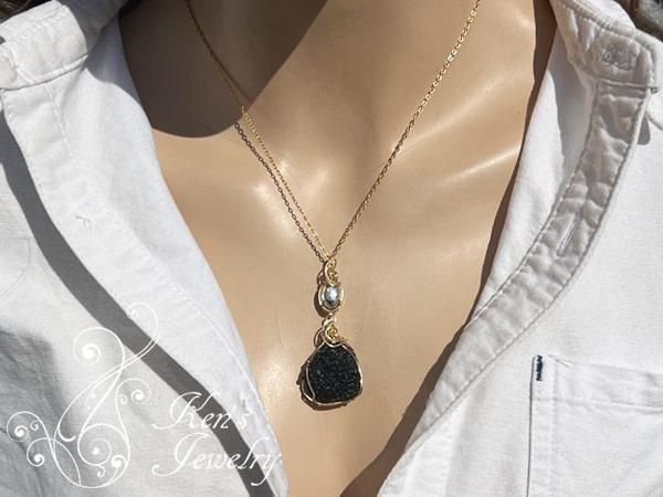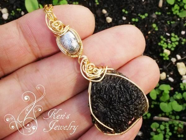 大変希少なモルダバイト原石と、スウェーデンのノールボッテンのキルナで発見されたムオニナルスタ隕石のカボションを贅沢に組み合わせて創ったペンダントです。モルダバイトは迫力のあるサイズでモルダバイトのバイブレーションを存分に味わっていただける高品質な原石です。パワフルなエネルギーを持つムオニナルスタ隕石とモルダバイトの組み合わせは素晴らしい宇宙の波動を感じさせてくれます。