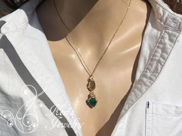 金運や仕事運、健康運、邪気払い、開運などの効果があるとされているタイチンルチルのルースと、豊かさを引き寄せるブラジル産ジェムクオリティのエメラルドを贅沢に組み合わせました。この組わせは非常に力強く存在感のある贅沢なネックレスで、持ち主様だけでなく周りの方にも幸せな気分を届けてくれる素敵なネックレスとなっています。